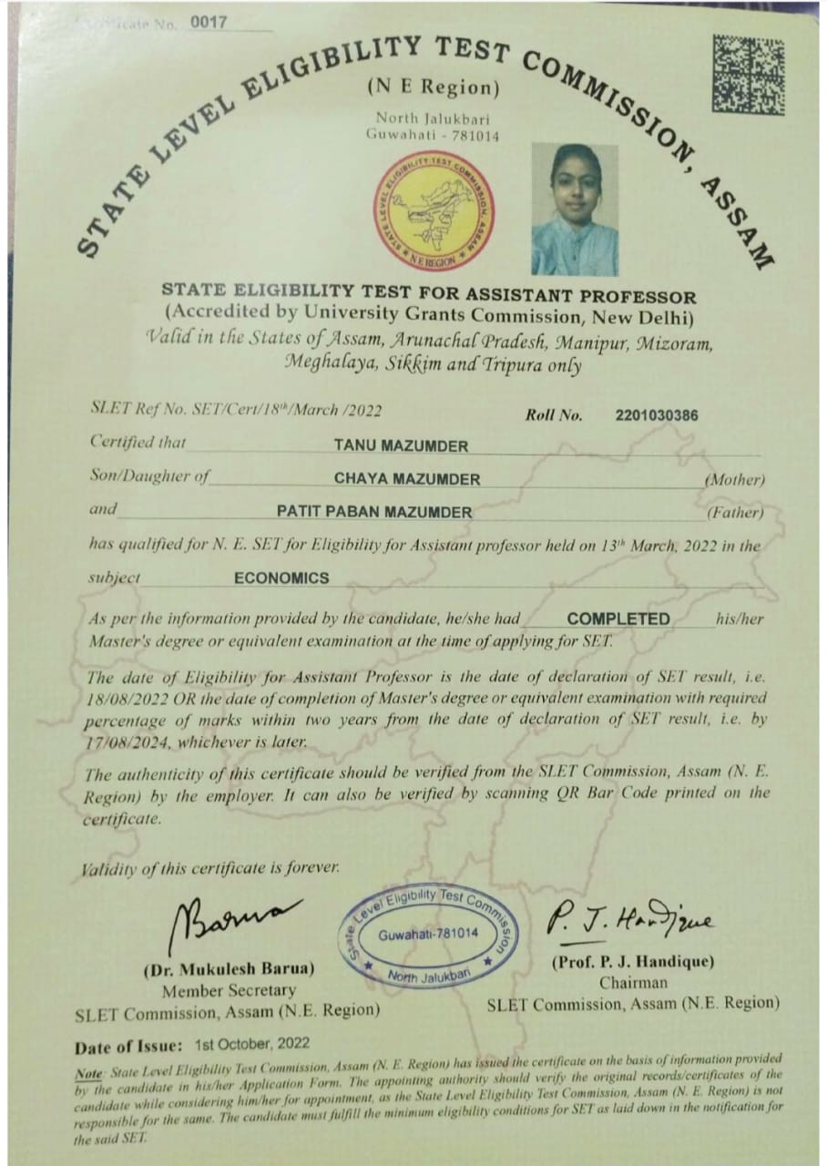 SLET certificate of Tanu Mazumder